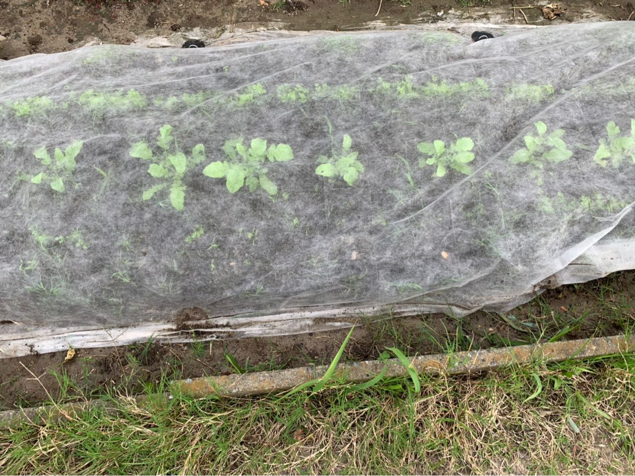 とりあえず、大根と人参の畝の不織布をめくって雑草抜きと、間引きを実施。