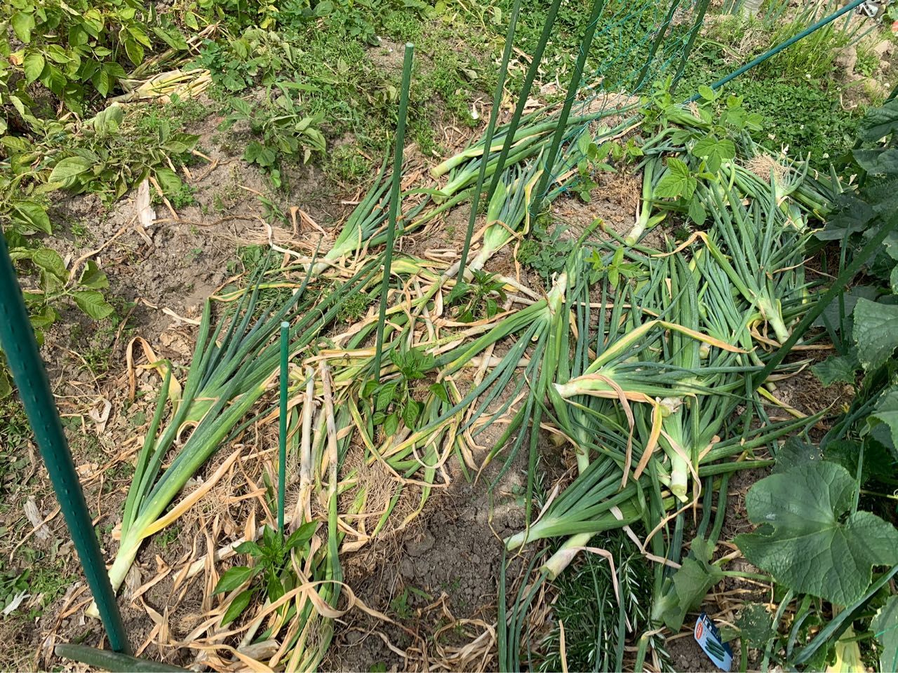 本日は、タマネギを57個。ニンニクを15個収穫しました。